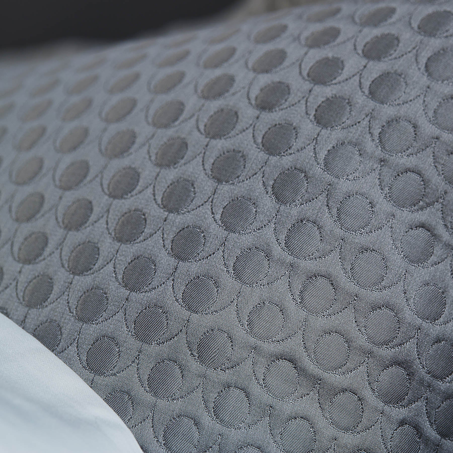 Un periodo storico ricco di arte, colore, tendenza e modernità da cui nasce l’ispirazione per un copriletto in piquet di seta Jacquard decorato da onde e cerchi dall’effetto trapuntato.