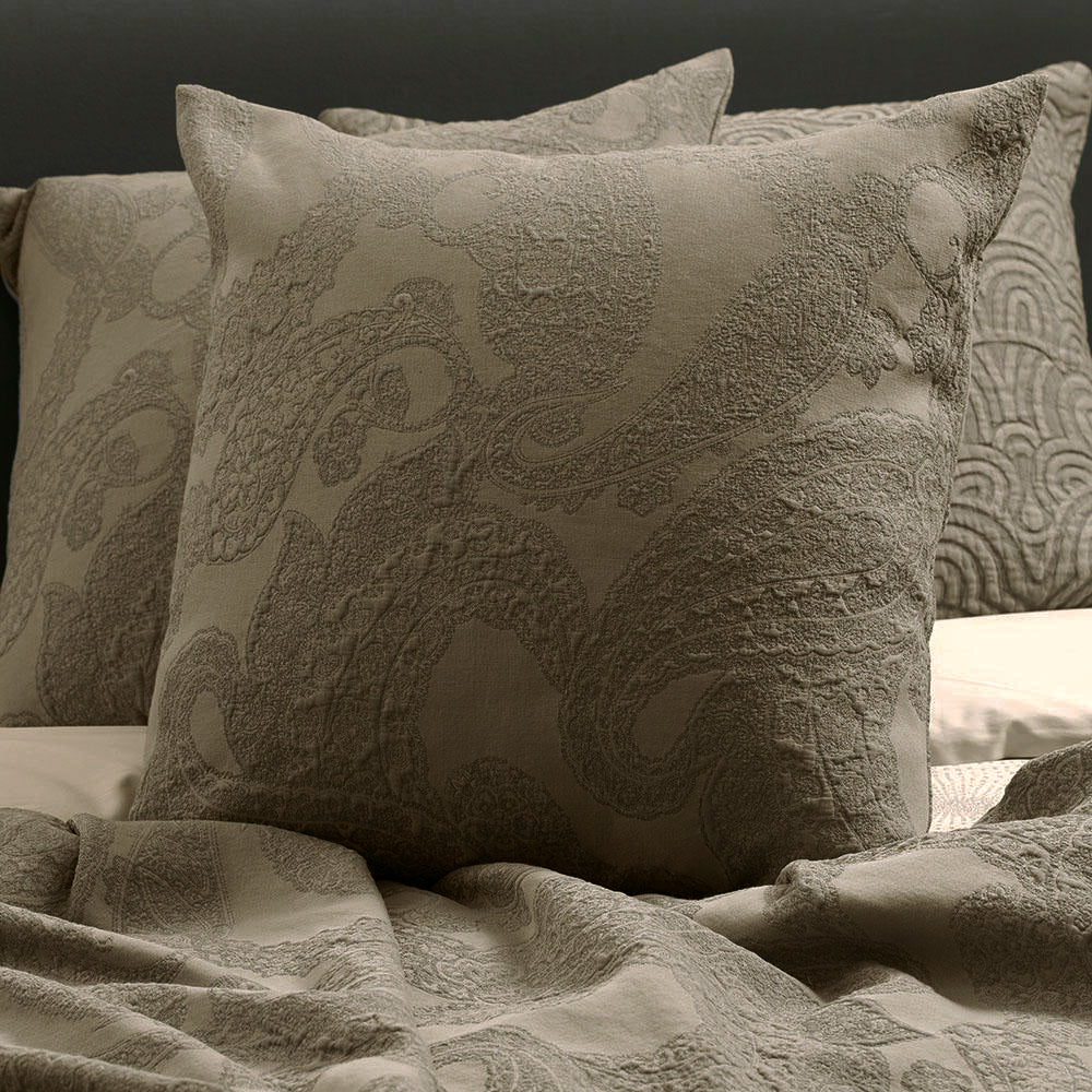 Sempre unico nel suo decoro Paisley tridimensionale, ottenuto dalla particolare struttura tecnica del tessuto naturale, un pregiato cotone a fibra lunga tinto in filo, e dallo speciale trattamento “Boutis Pertile”.