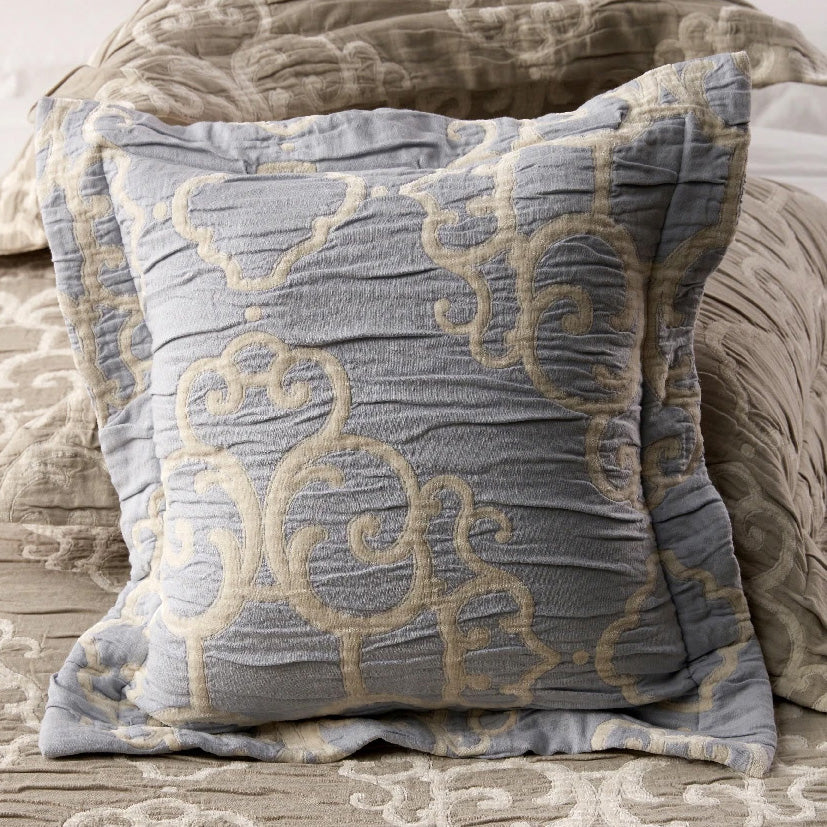 In grigio, beige e azzurro, Alhambra è il cuscino decorativo per eccellenza, ideale per trasformare ogni ambiente in un luogo di assoluta eleganza e regalità.