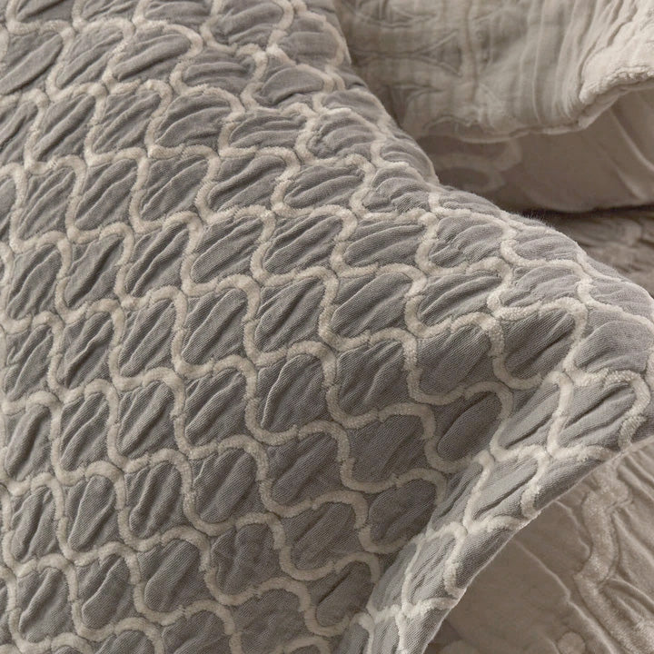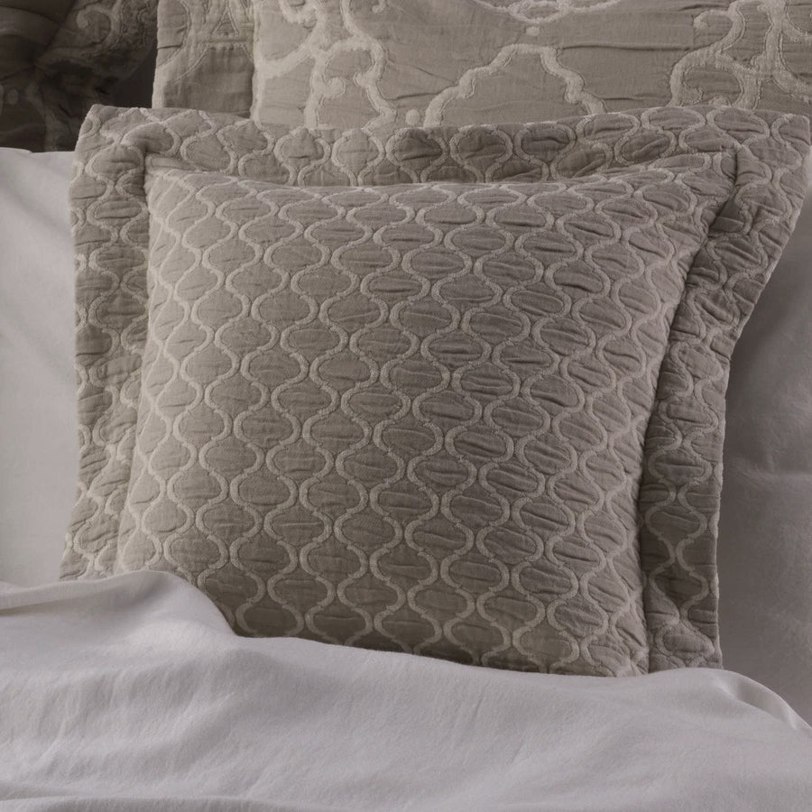 Il cuscino dalle decorazioni rigorose, uniformi e in rilievo è essenziale per dare un tocco di vitalità ed eleganza in ogni ambiente della casa. È composto da un tessuto in cotone e ciniglia, soffice e inodore. L’esclusivo prelavaggio artigianale esalta la struttura naturale della singola fibra, dando vita a una tridimensionalità unica.