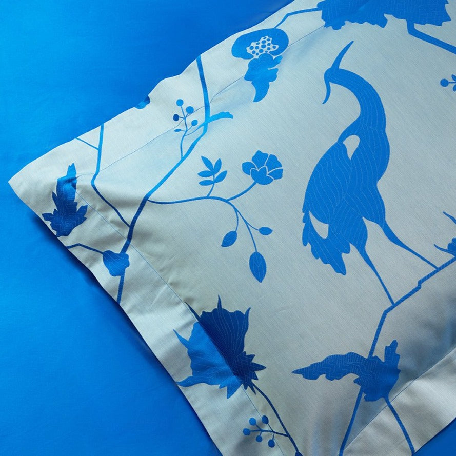 Se nella collezione Akira il Jacquard vi immerge insieme all’Ibis Sacro in un paesaggio lussureggiante, nell’Akira Reverse trama e ordito lavorano sui vuoti del fondo e sui monocromi pieni delle figure per tessere un quadro essenziale. Lo stesso mondo fantastico, due punti di vista. Dal migliore cotone al mondo a fibra extra lunga tinto in filo nasce così una federa a 4 volani di straordinaria contemporaneità. Densa, morbida, lucente e ispirata.