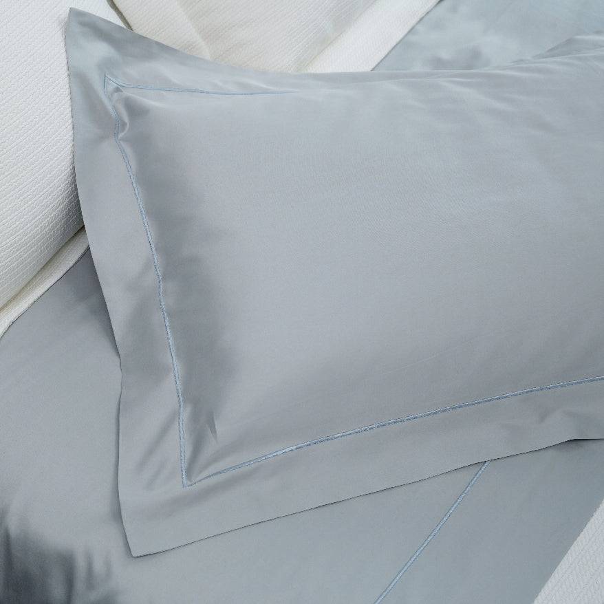 Morbido e fresco, è composto da un lenzuolo e due federe con volani finemente rifiniti da un singolo cordonetto in tinta. Completa il set un lenzuolo sotto con angoli.