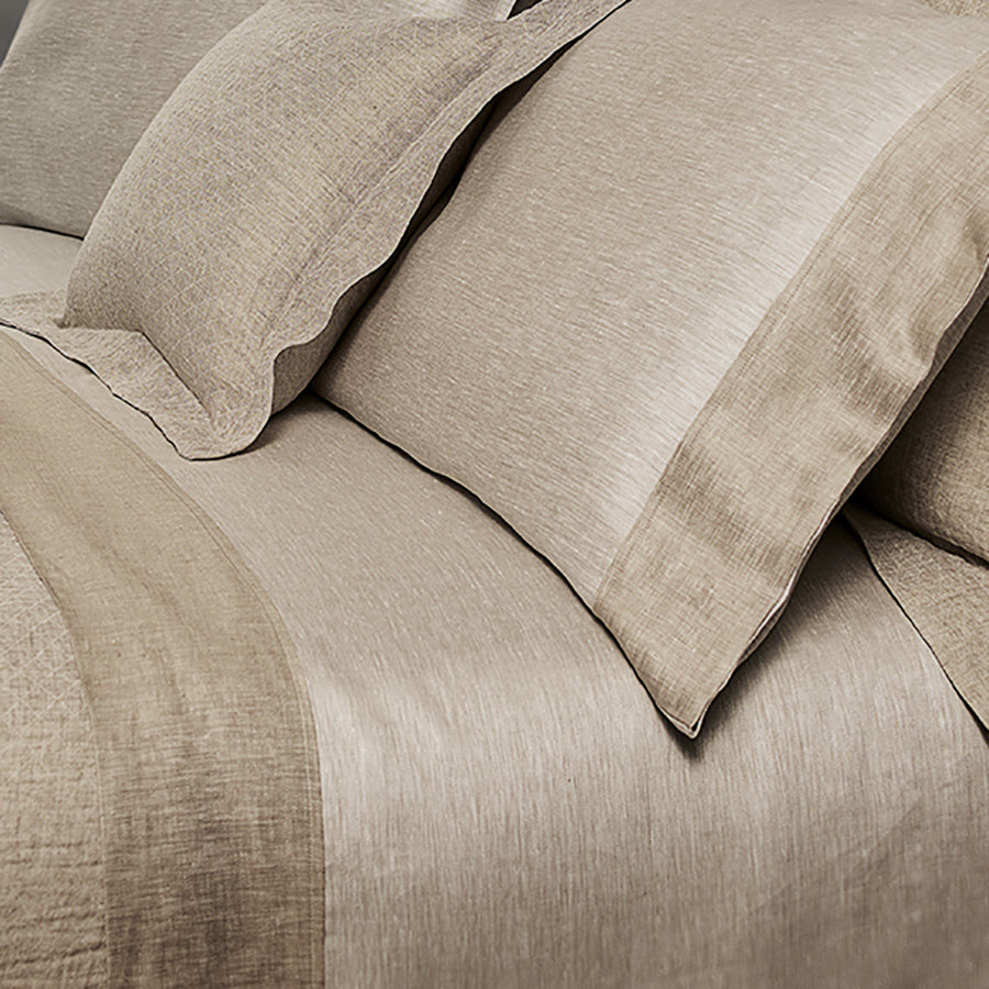 È la ricerca dell’armonia a ispirare il processo di creazione dei nostri completi in raso di lino delle Fiandre tinto in filo. La materia prima, la sua lavorazione e la scelta della palette colori restituiscono allo sguardo e alla mano un’immediata sensazione di calma ed equilibrio. La qualità del filato, la migliore al mondo, viene valorizzata dal lento lavoro di finissaggio, che rende il tessuto ancora più morbido e lucido. La tonalità più scura del bordo del lenzuolo e delle federe svela la bellezza dell’intreccio tra la trama e l’ordito. Il set, fresco d’estate e accogliente nelle stagioni più fredde, si completa con un lenzuolo di sotto con angoli in tinta unita coordinata. Armonia è una collezione dedicata a chi ama l’autenticità dell’eleganza naturale.